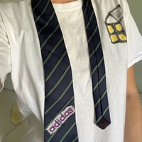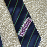 Navy sininen raidallinen silkkisolmio, jossa adidas-logo