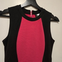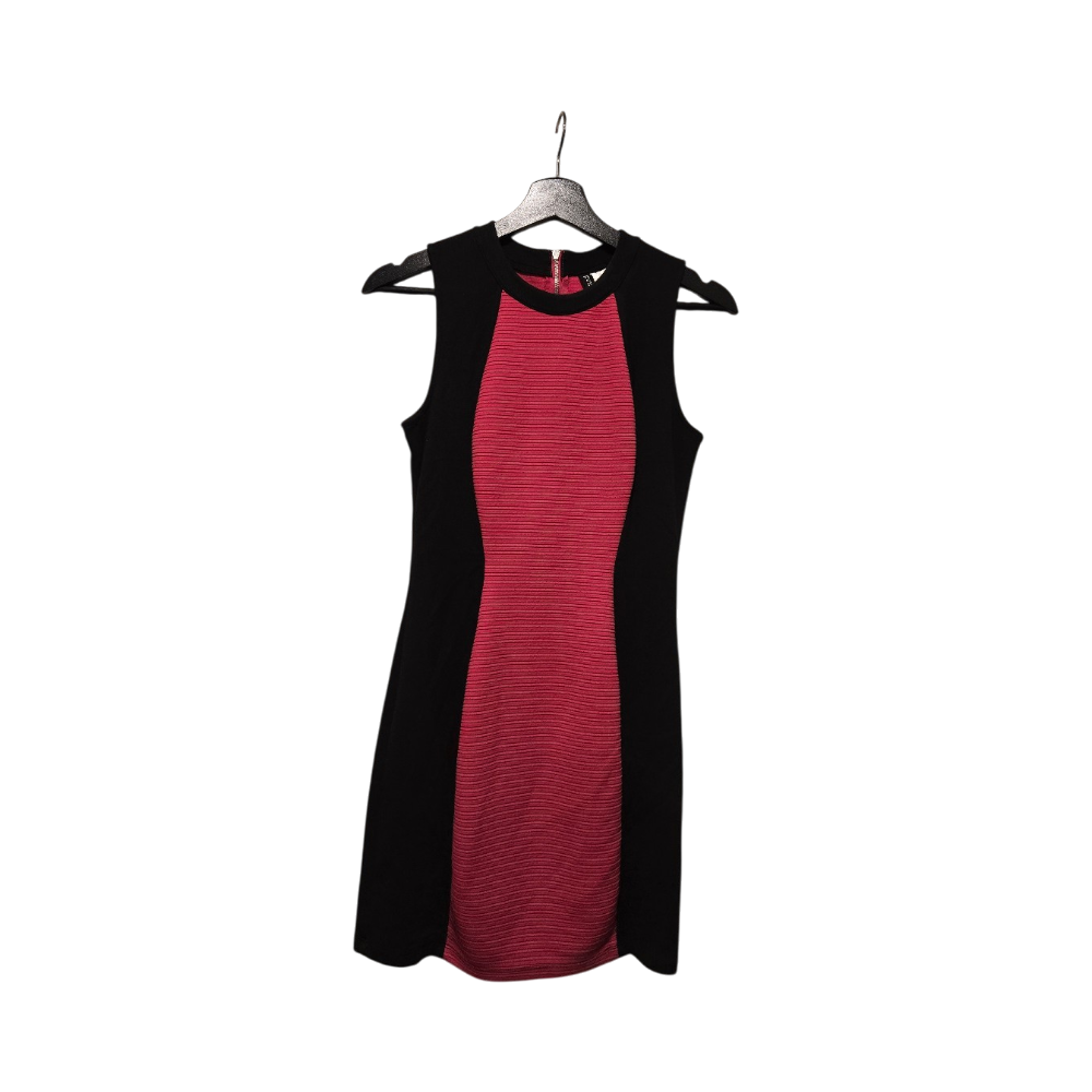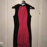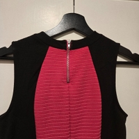Musta sivuosioinen, ribbineulottu pinkki mekko, vetoketju takana.