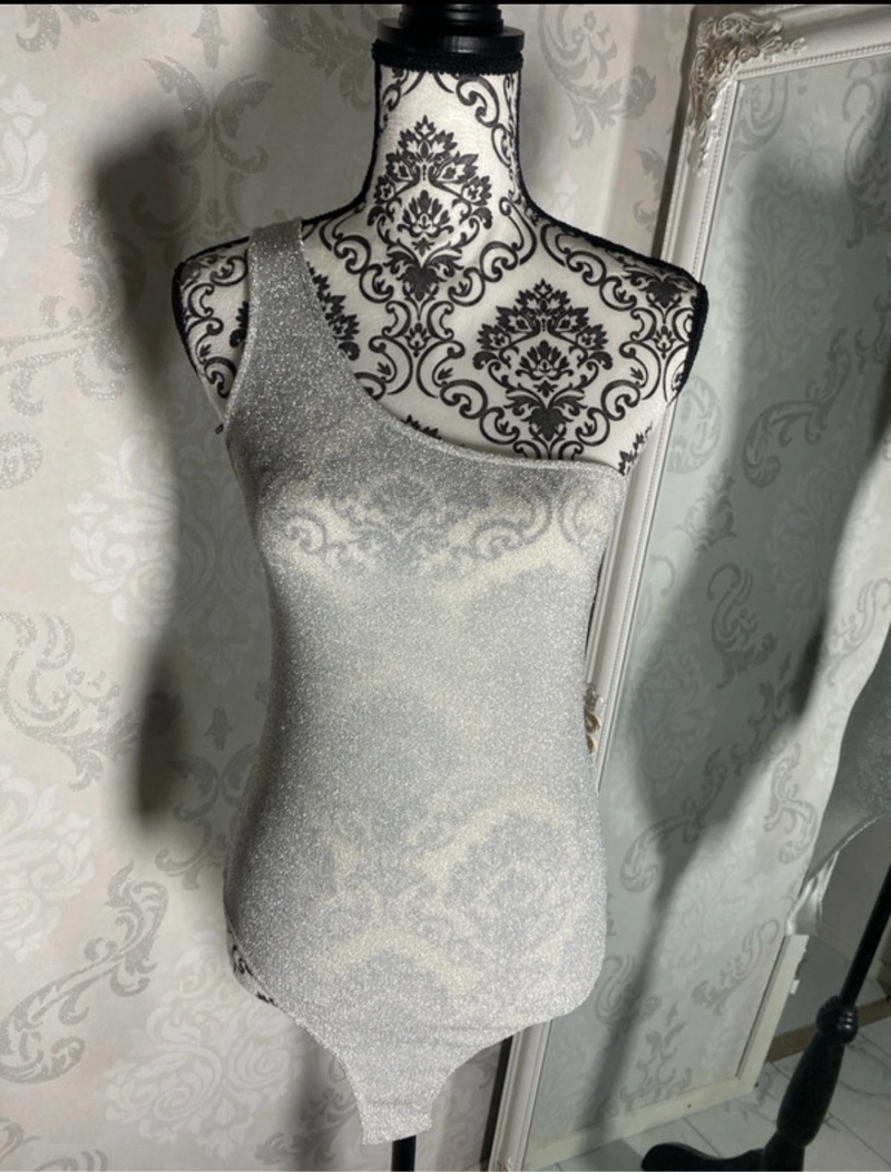 Kimalteleva yksiolkaiminen bodysuit, vartalonmyötäinen. Koko S