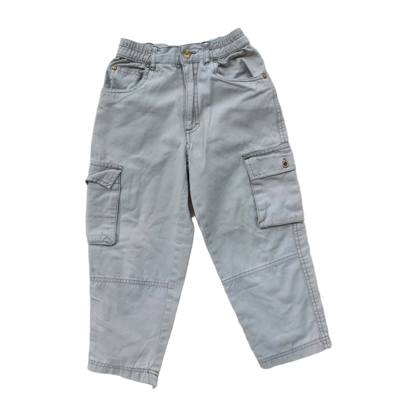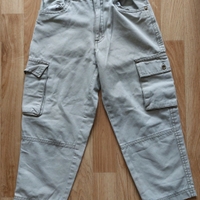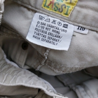 Beiget reisitaskuhousut. Vyötäröllä avattava vetoketju ja nappi sekä kuminauha. Koko 110cm. Tosi hyvässä kunnossa