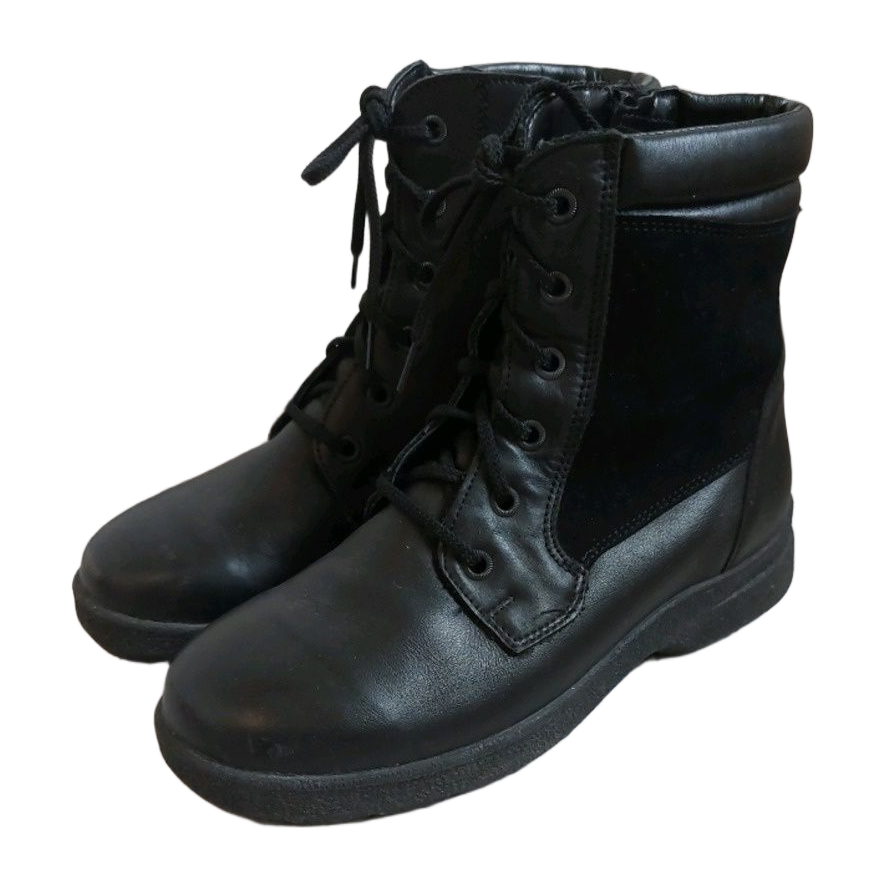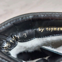 Topmanin mustat nahkakengät. Kengissä erityiset kitkapohjat, jotka estää liukastumista. Sivuilla vetoketjut. Kengät olleet käytössä vain muutaman kerran eli melkein kuin uudet. Aitoa nahkaa. Sisäpuolella lämmin vuori. Koko 36