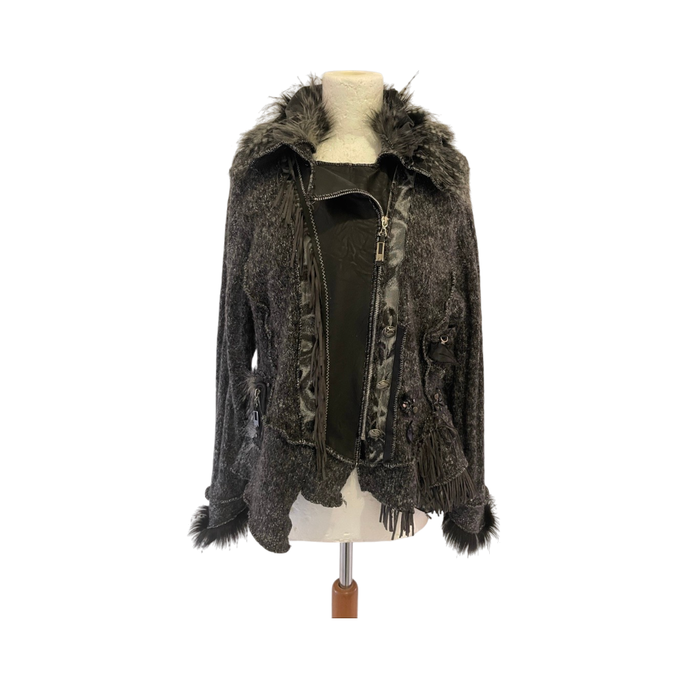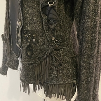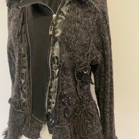 Villasekoitetakkuturkoskaulukseslla ja hihansuissa. Takki sisältää ihania ja runsaasti erilaisia yksityiskohtia.