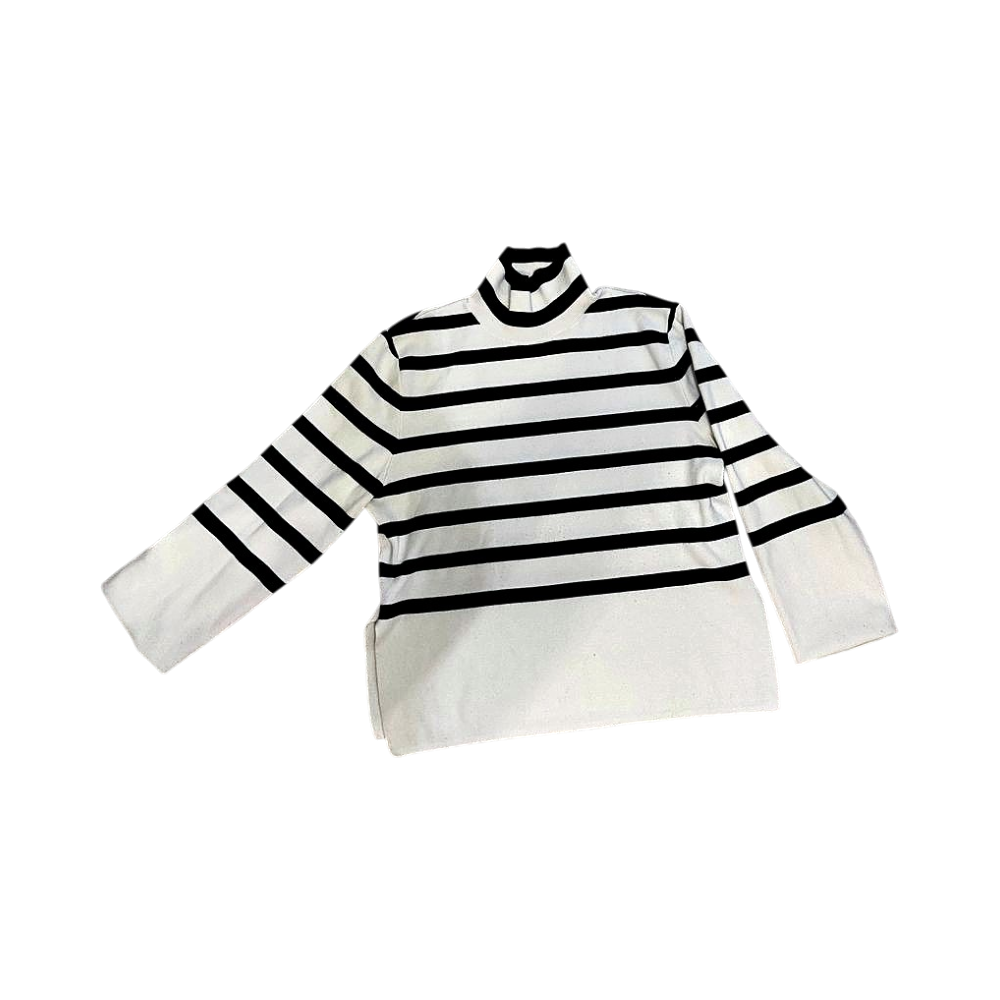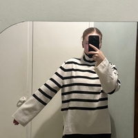 Hyväkuntoinen naisten neule mustilla raidoilla. Hyvässä kunnossa ja ollut vähällä käytöllä