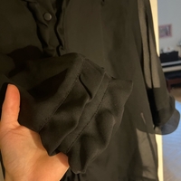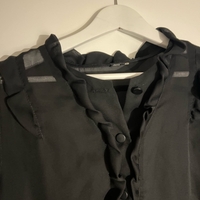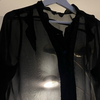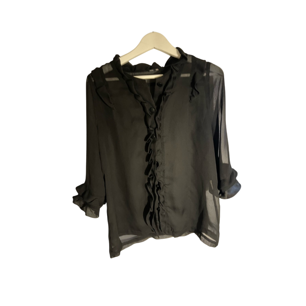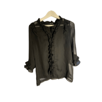 Kevyt, läpikuultava sifonkipaita röyhelöillä.