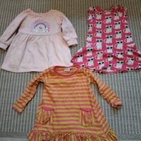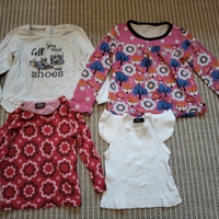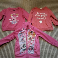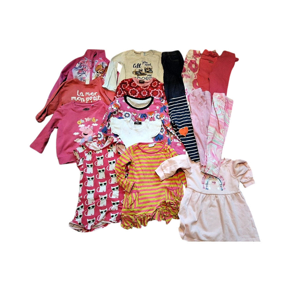 Hyväkuntoinen tyttöjen käyttövaatepaketti 92/98 koossa. Osaa käytetty enemmän ja osaa vähemmän.