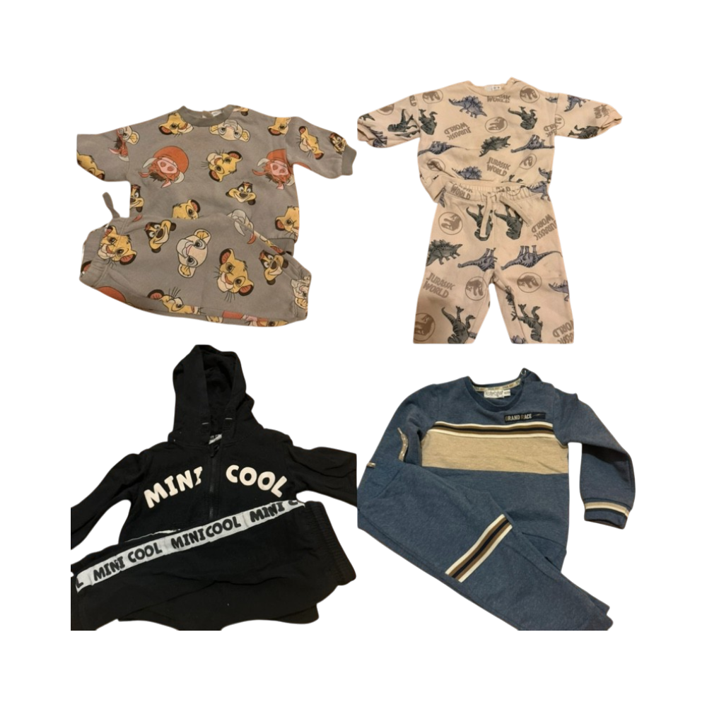 Bundle of four kids sweatshirts/pants sets, casual and printed.