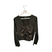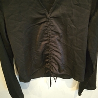 Pitkähihaine kevyt paita, rypytys edessä ja V-kaula-aukko.