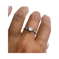 Hopeinen sormus kirkkaalla timanttikivellä ja pienillä kivillä.