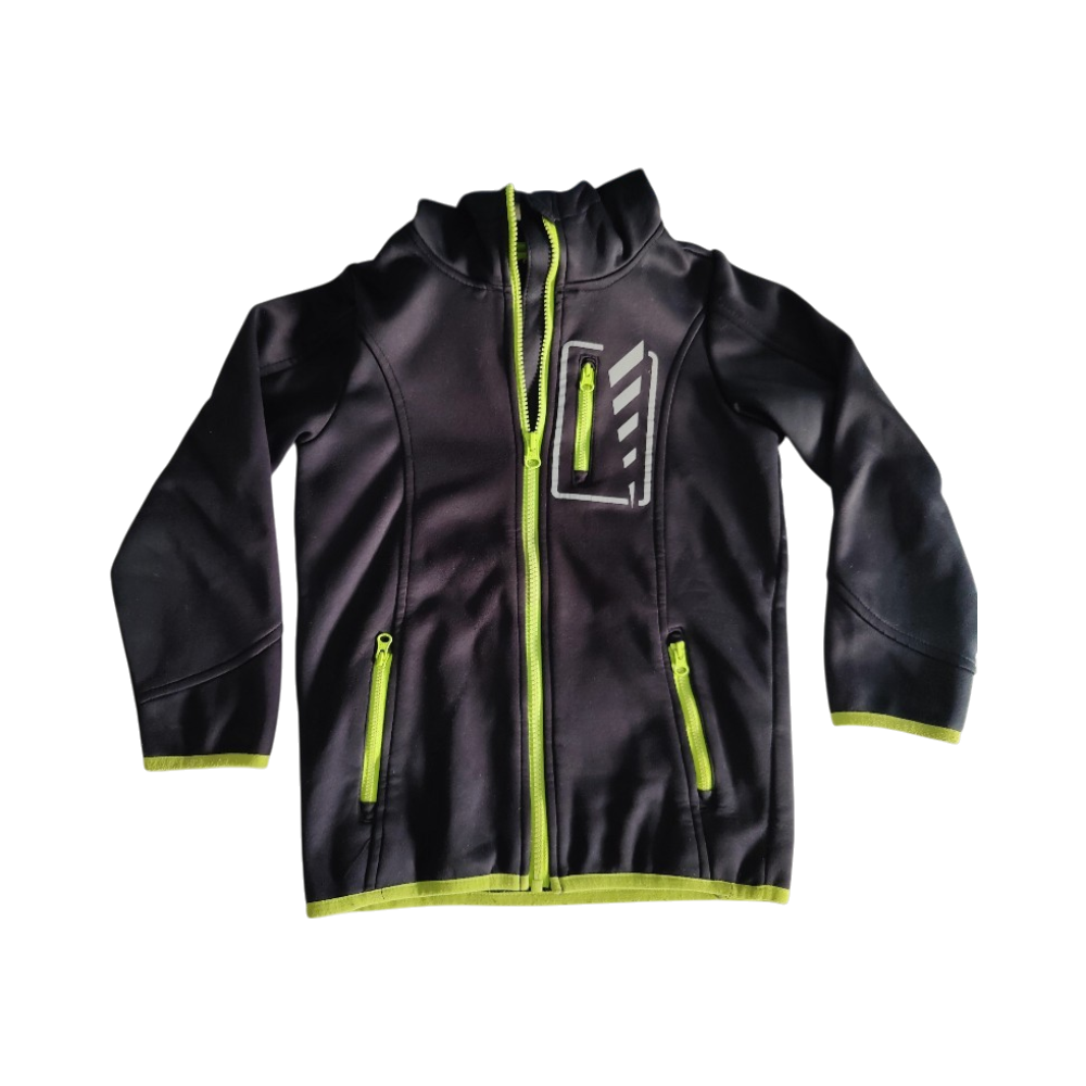 Kevyt softshell-takki, vetoketjulliset taskut, hyvä kunto. Koko 122/128.