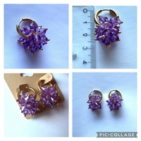Korvakorut, joissa violetit helmet ja kultainen rengas.