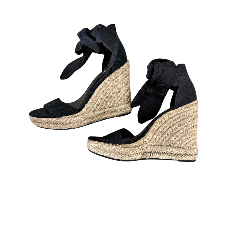 Mustat espadrille-korkokengät, solmittava nilkkaremmi. Koko 38