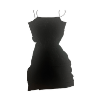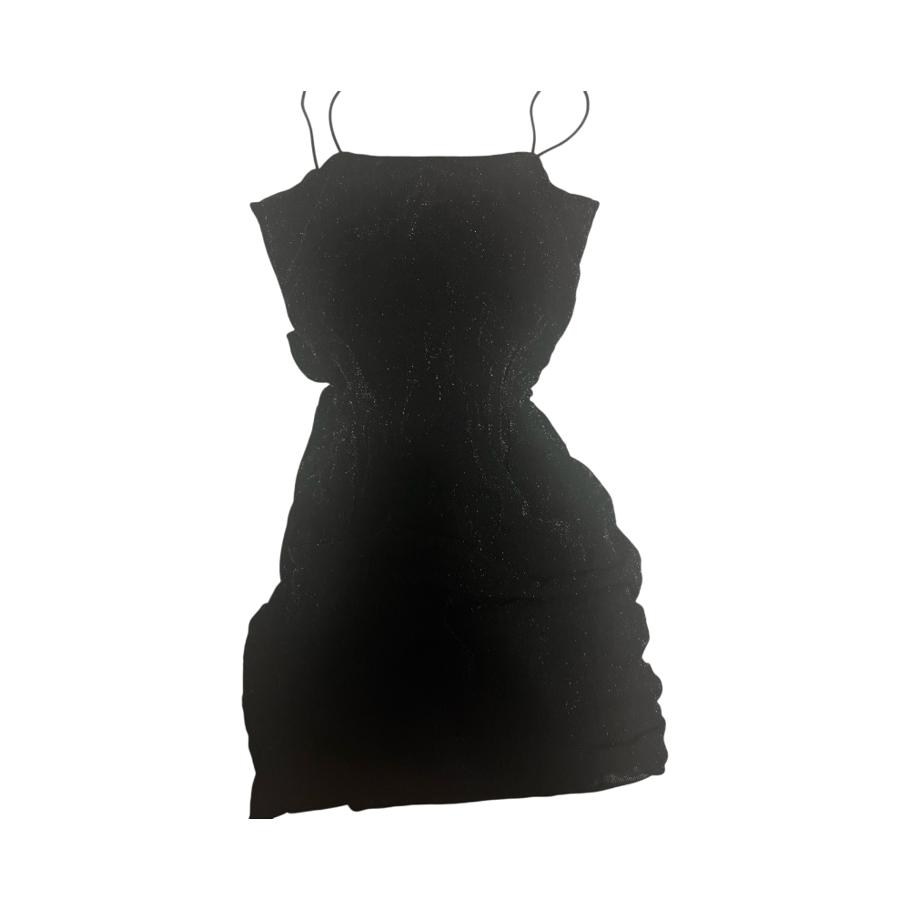 Lyhyt, spagettiolkaimellinen juhlapuku.