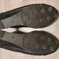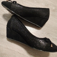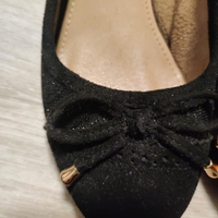 Mustat naisten kiilakorkoiset ballerinat, strassimaista kiiltoa. Rusetit. Vain pari kertaa käytetty.