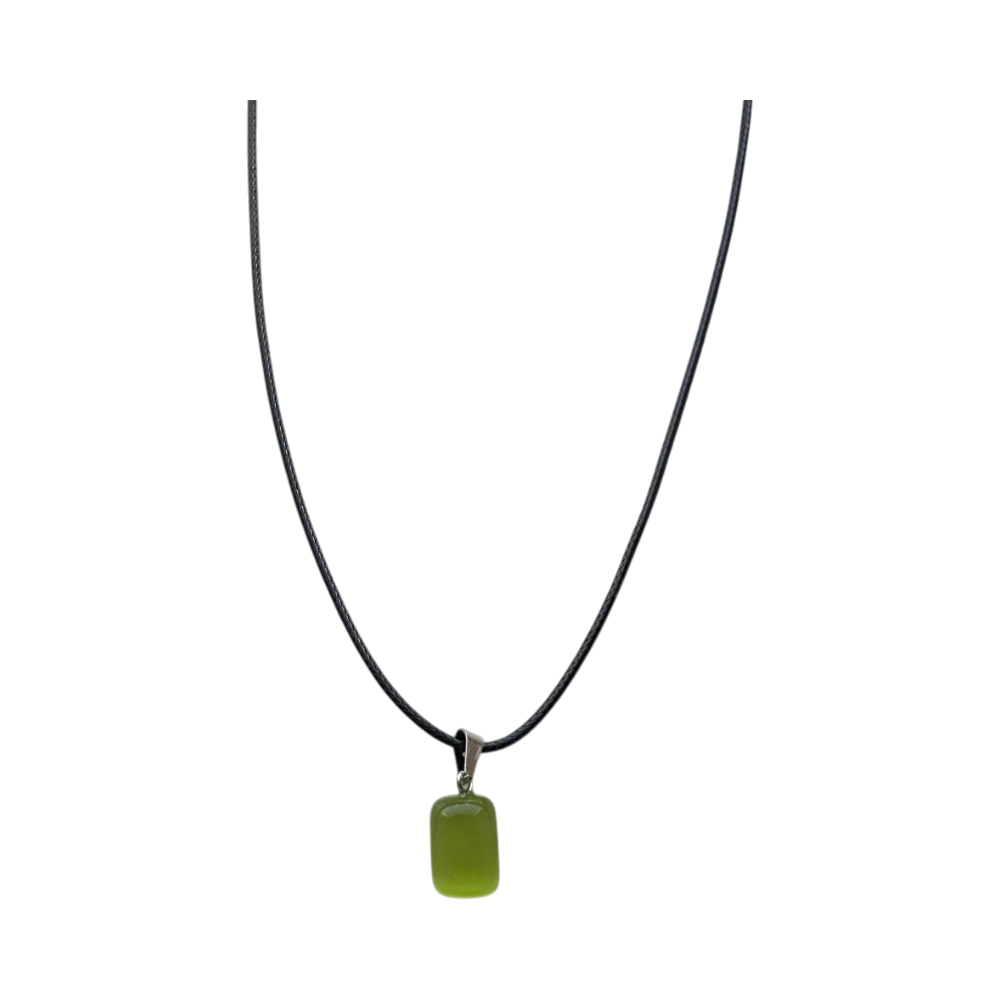 Vihreä kivikaulakoru mustalla ketjulla