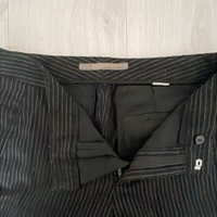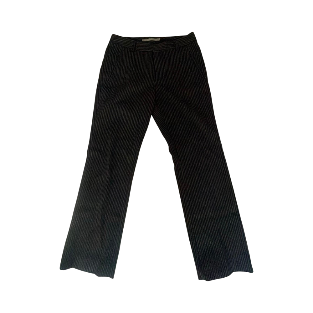 Mustat suorat housut valkoisilla pinstripes-raidoilla.