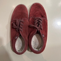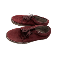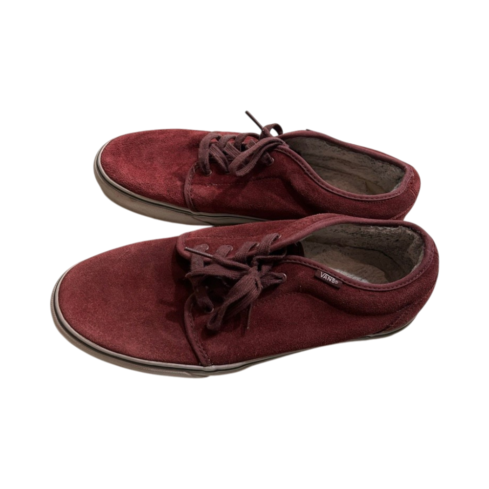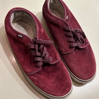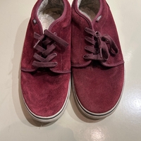 Vansin viininpunaiset kengät kokoa 43 (US 10). Perus käytetty hyvä kunto. Likaa tarttunut hieman valkoisiin osiin ja kenkien sisäpuolelta kangas hieman kulunut (katso kuvat).