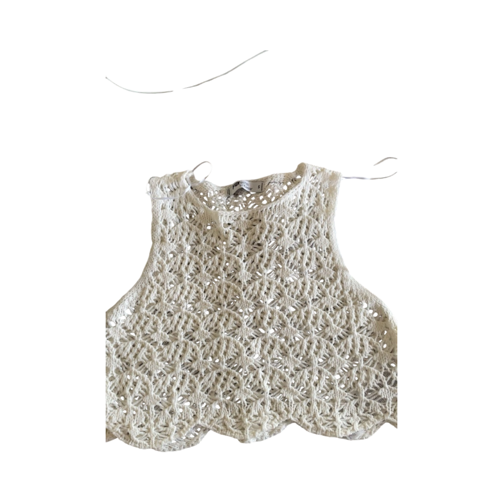 Virkattu, hihaton crop-top, koristeellinen aaltohelma.