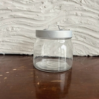 Lid aluminium, jar made of glass. Air tight.