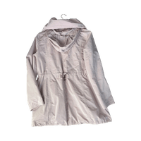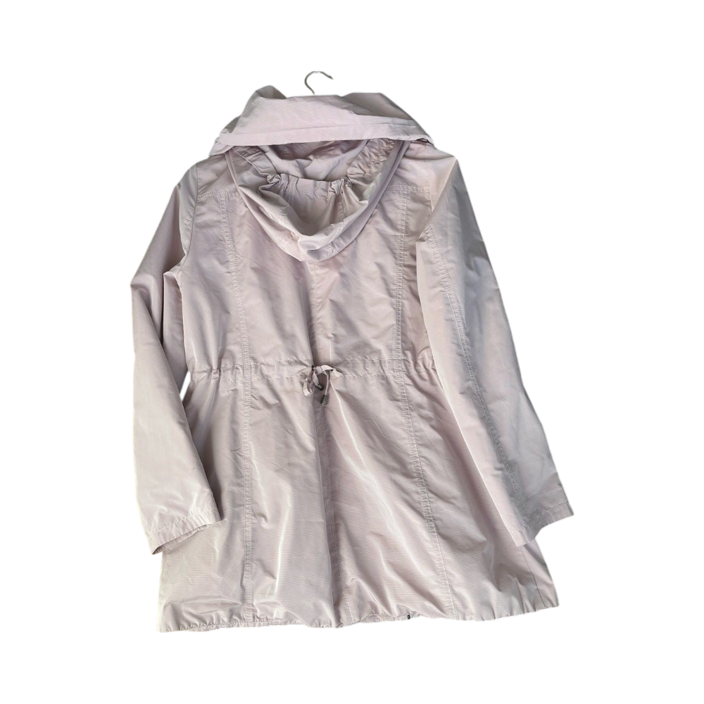 Pastellinvaaleanpunainen takki kosteudenpitävää materiaalia. Vuori ja irrotettava huppu. Hyvässä kunnossa.