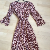Kauniinvärinen, hyväkuntoinen mekko laskeutuvaa kangasta. Mekossa on sisällä vuori.