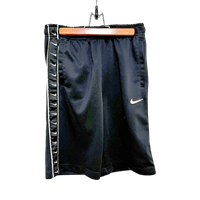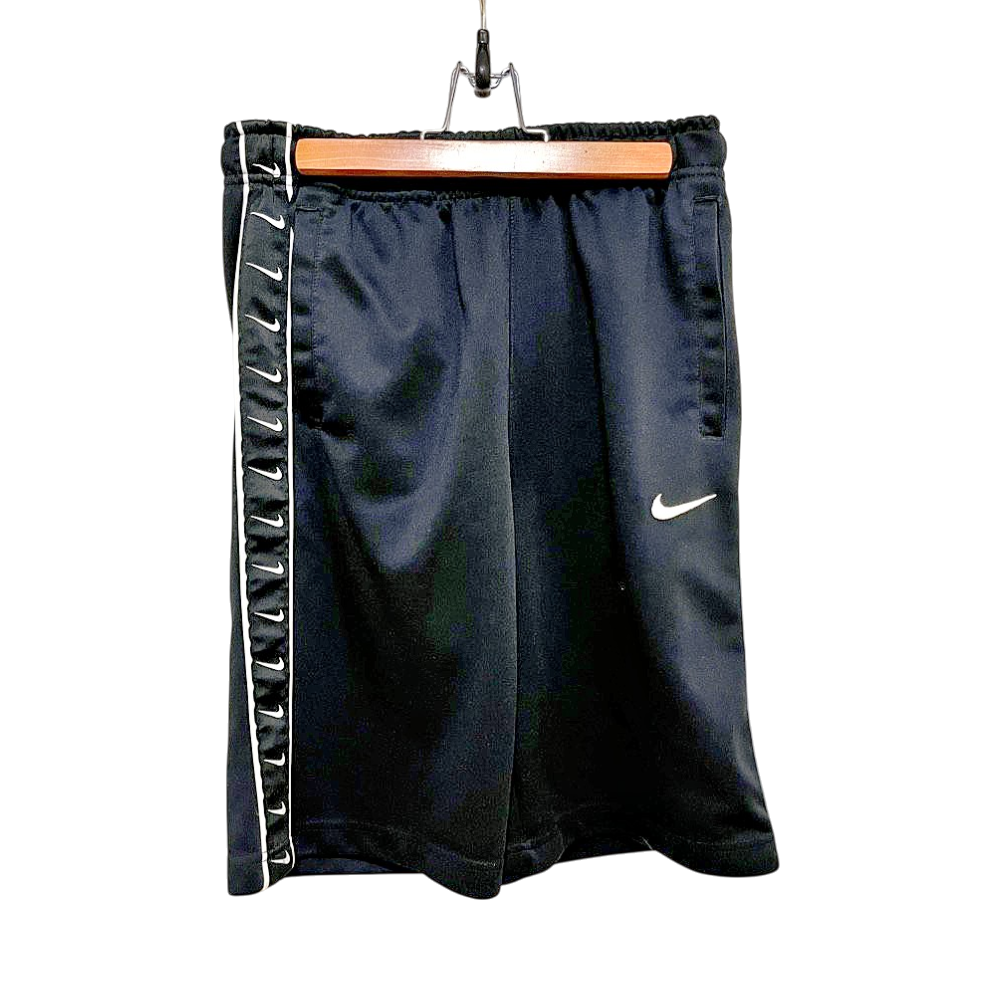 Nike miesten mustat urheilushortsit, valkoiset logot sivuilla.