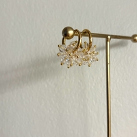 Kultaiset korvakorut kirkkailla kristalleilla. Pienet ja sirot. Renkaat ovat ruostumatonta terästä ja 18K kultauksella päällystetyt.