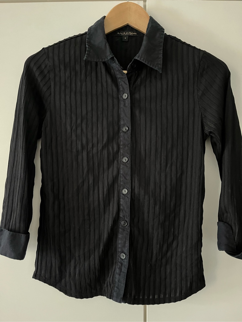 Musta joustavakankainen paita. Menee myös pienemmälle