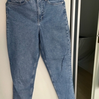 Naisten siniset farkut mom jeans -mallia. Koko 38