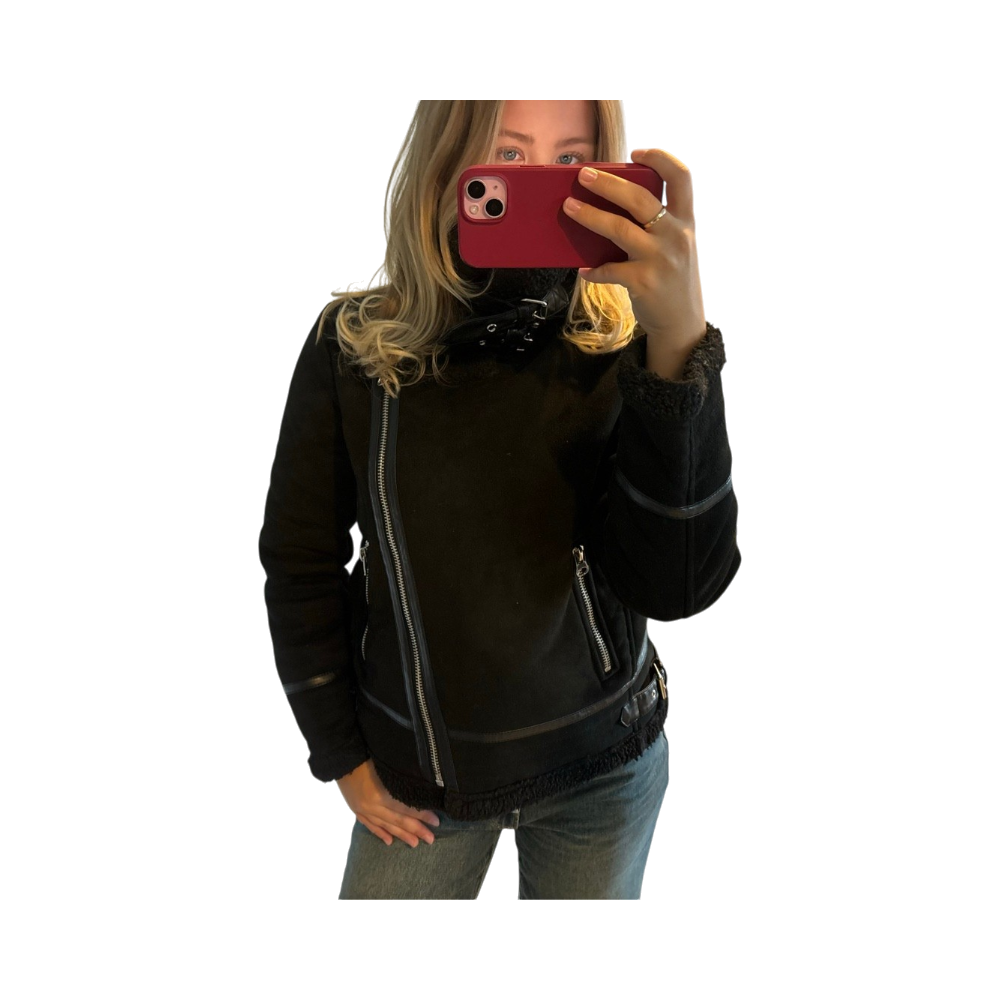 Zaran keinonahkatakki karvavuorella. Koko on xs. Tosi hyvä kunto!
