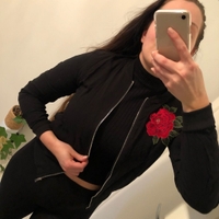 Siisti bomber tyylinen kesä takki. Ohutta ja mukavaa viskoosia 100% ja taskut edessä. Kaunis kukka kuvio oikeassa rinnassa, metallinen vetoketju. Koko S, menee myös S/M.