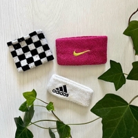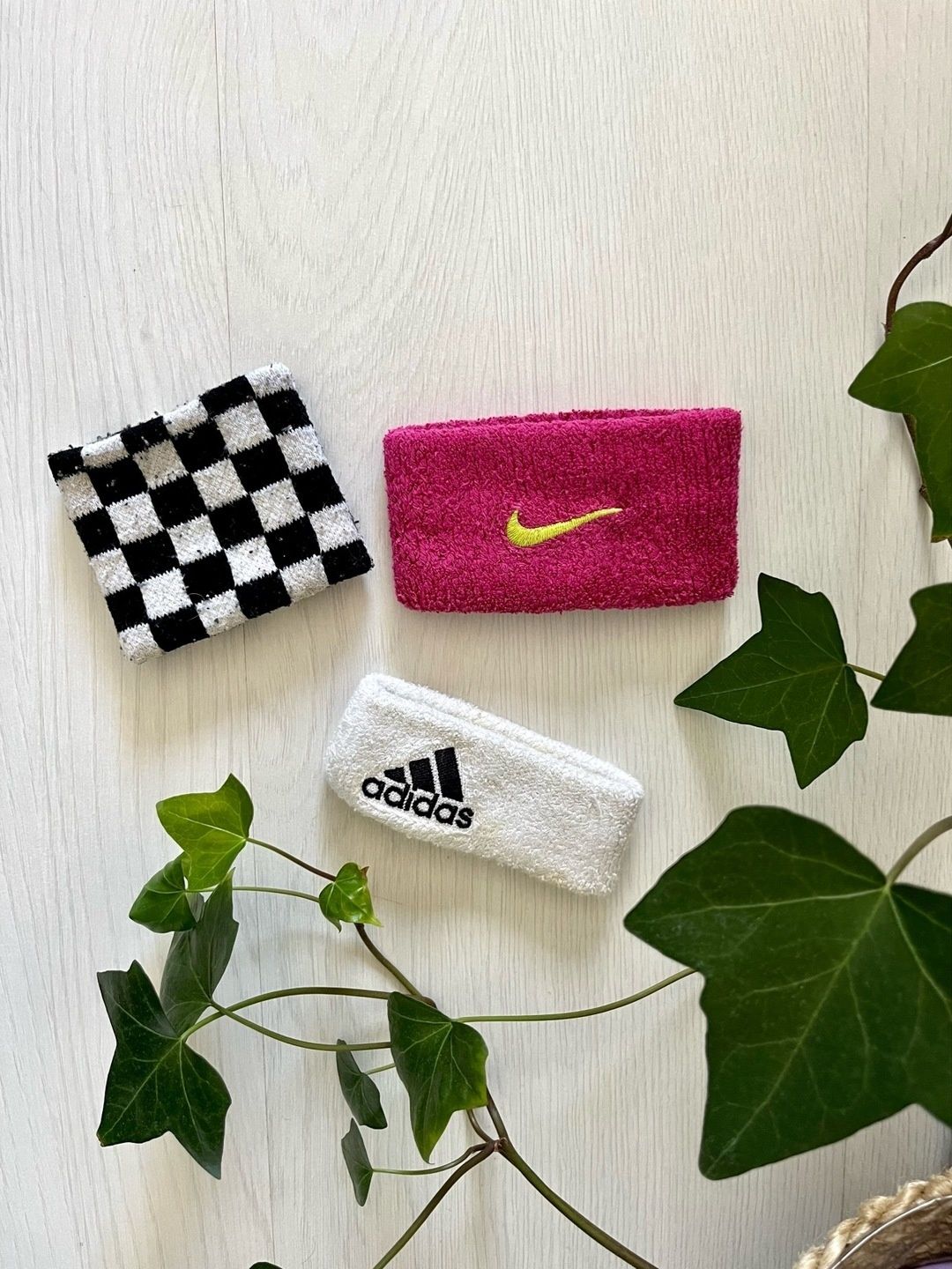 Kolme hikinauhaa käteen. Adidaksen valkoinen nauha sopii kyynerpään yläpuolelle, Nike sopii kyynerpään alapuolelle ja ruudullinen on vähän tiukempi niin käy ranteeseen kivasti.