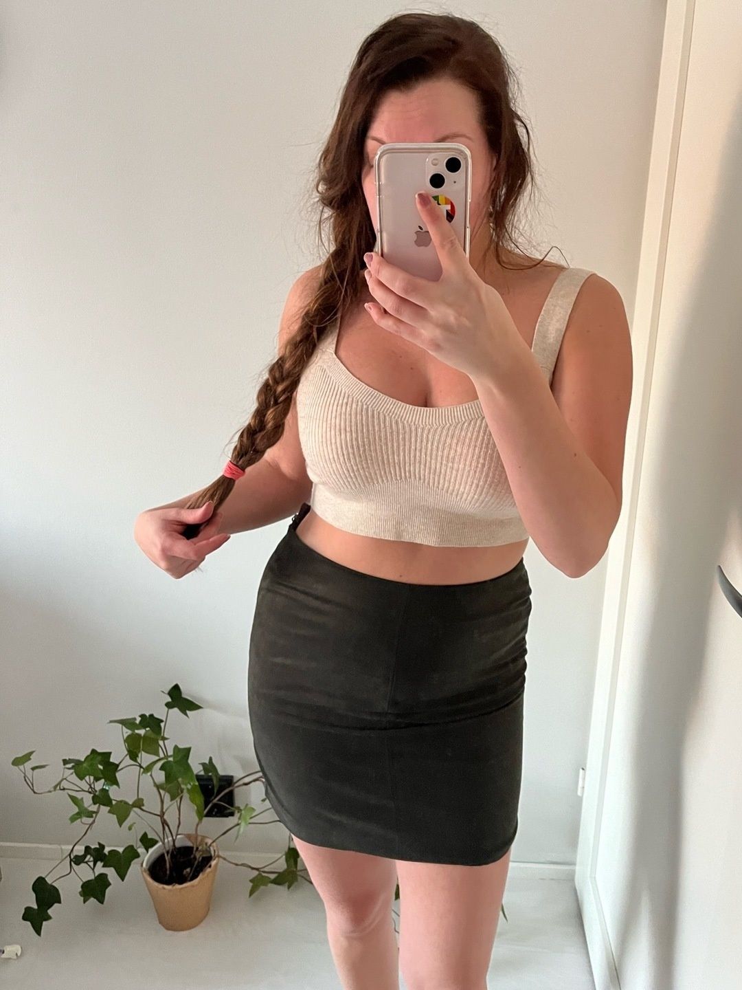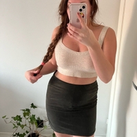 Ihana tummanvihreä mokkatyylinen hame. Vetoketju takana. Kokolapussa lukee 36, mielestäni vastaa kokoa. Erittäin siistissä kunnossa, kangas on joustava mutta sisävuori ei jousta.