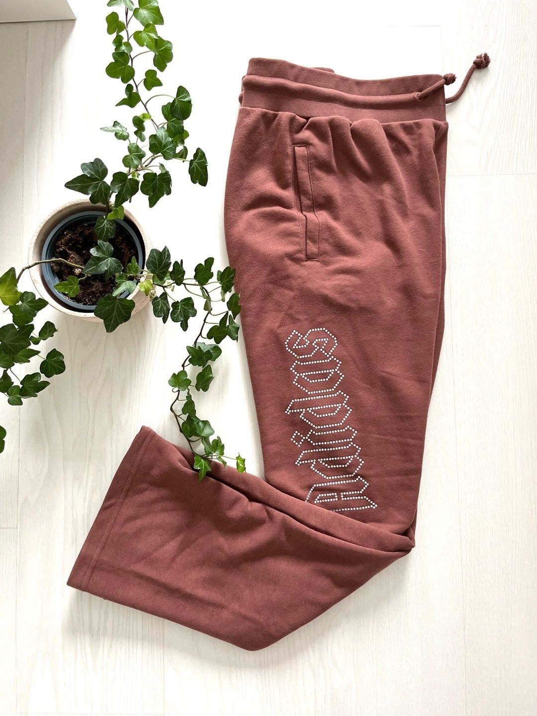 Adidas ruskeat flared legs / bootcut college housut jossa upeat strassi timantit reiden kirjailussa ja Adidas logossa. Muutamia kertoja käytetty. Siistissä kunnossa. Koko 38 mielestäni vastaa hyvin kokoa menee reilumpana myös 36 kokoiselle. Kangas ei jousta.