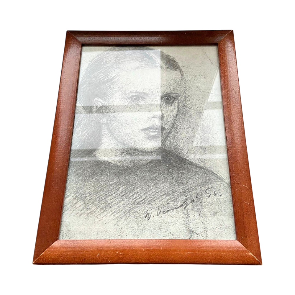 Ihana vintagetaulu Veikko Vionojan piirustuksesta, kehyksen koko 21x27cm