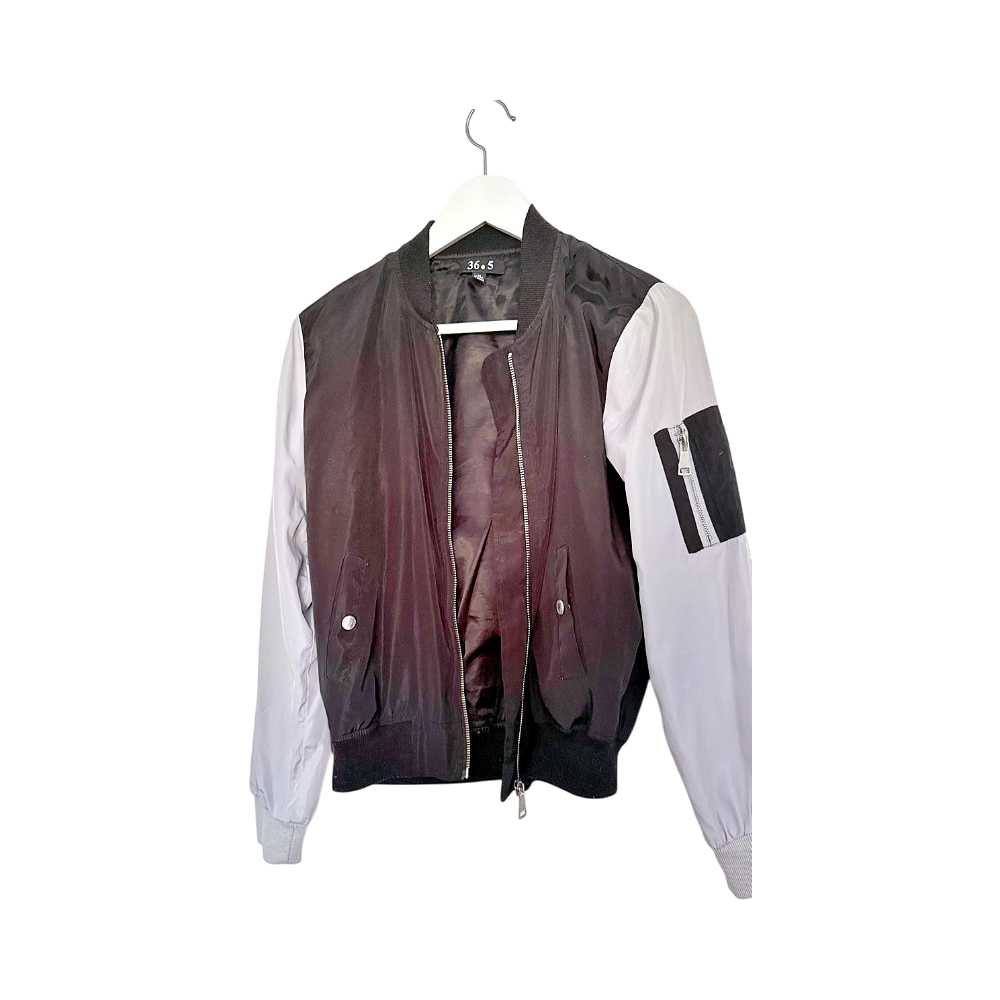 Naisten bomber-takki, musta runko, harmaat hihat, koko M