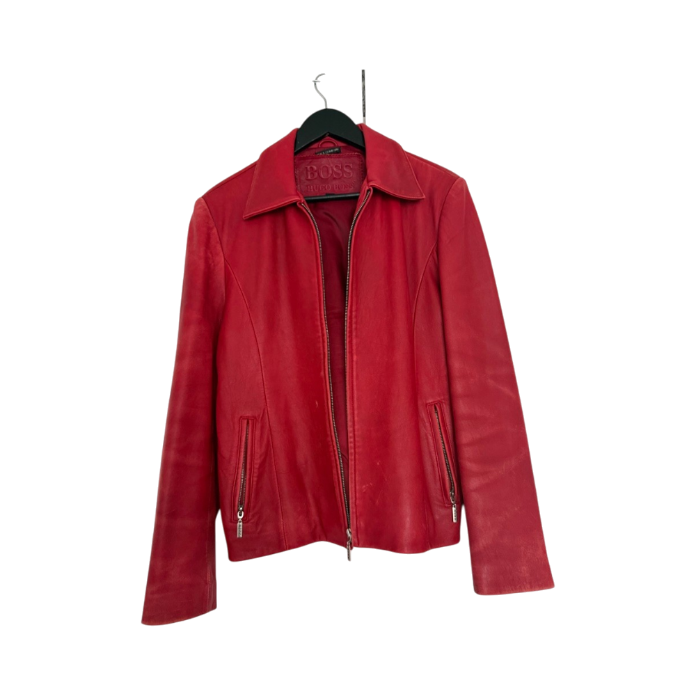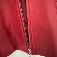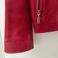 Naisten lyhyt vetoketjullinen nahkatakki. Takissa kulumaa, näkyy kuvissa. Takki on kuitenkin käyttökuntoinen.