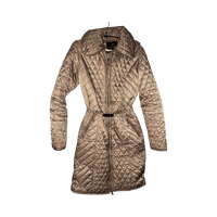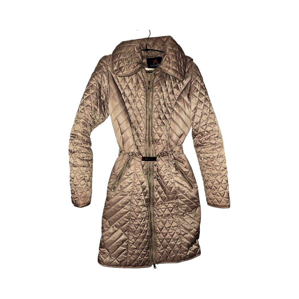 Vaalea beige kevyt talvitakki. Uudenveroinen kunto. Kaksi vetoketjua.