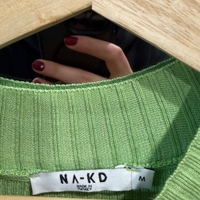 vihreä na-kd ribbimekko koossa m. käytetty kerran eli lähes uudenveroinen. tooodella mukava päällä! joustaa hyvin eli menee myös L-XL-koolle.
