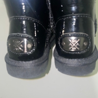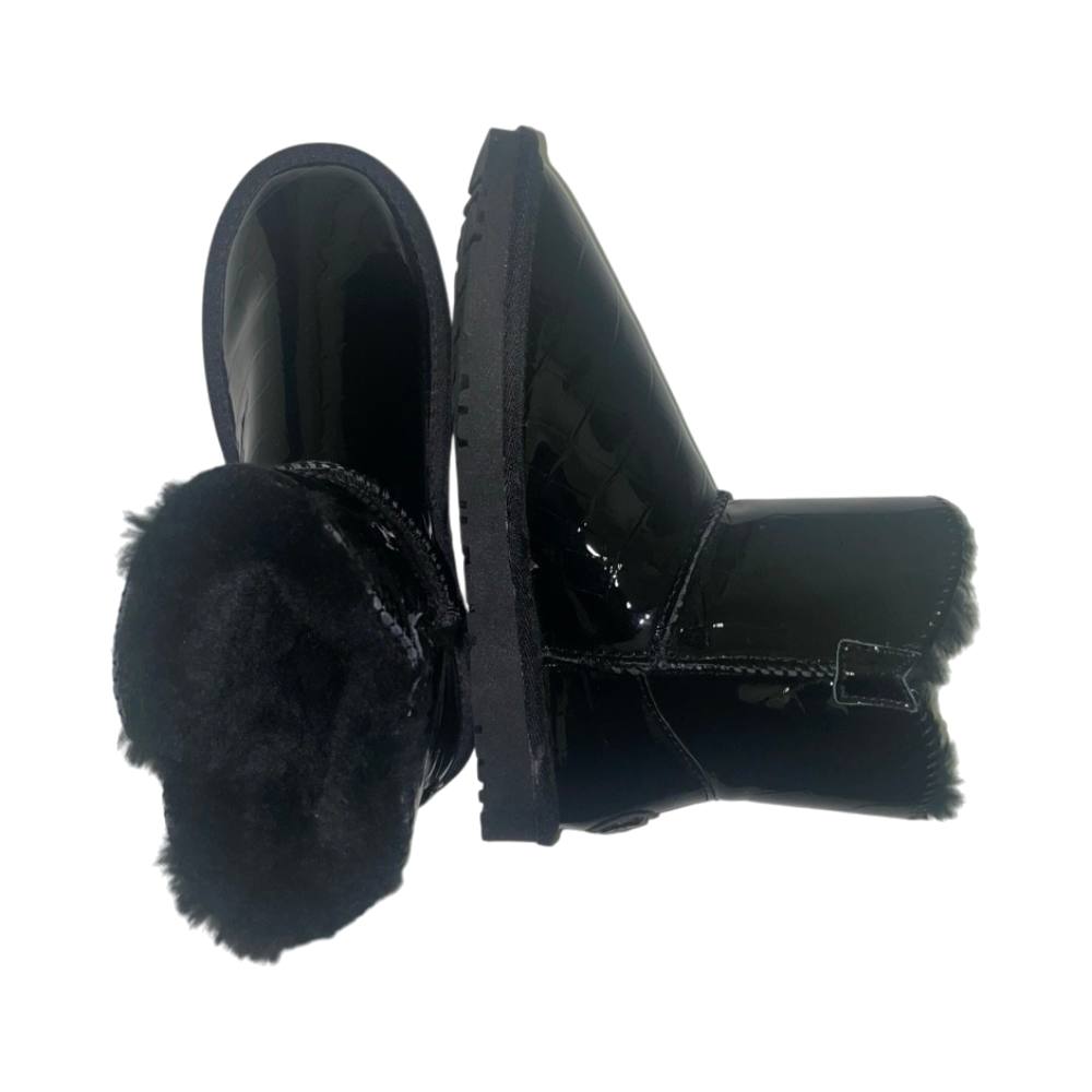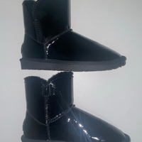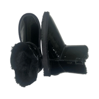 Lyhyt, pehmustettu ja kiiltävä talvikenkä, vuorattu sisäpuolelta.