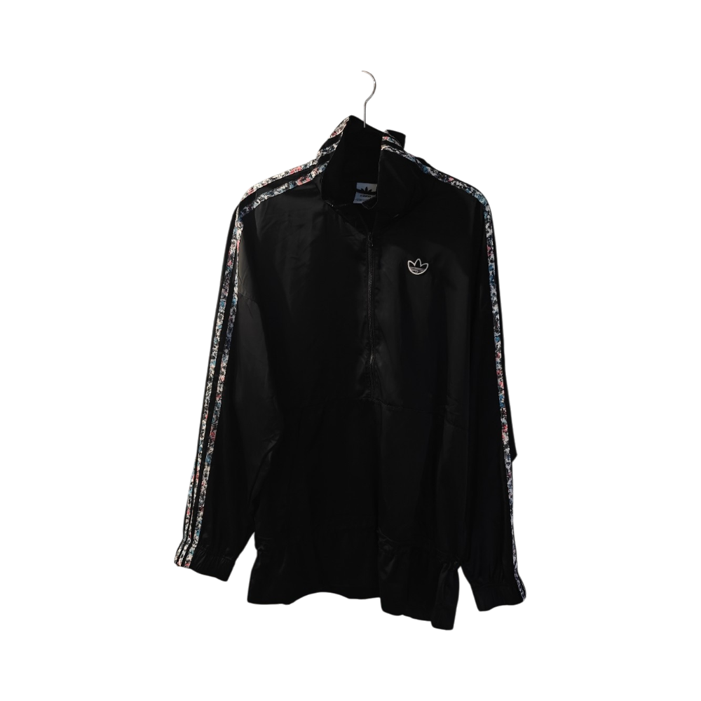 Kevyt vetoketjullinen adidaksen treeni/ulkoilutakki, kukalliset raidat.