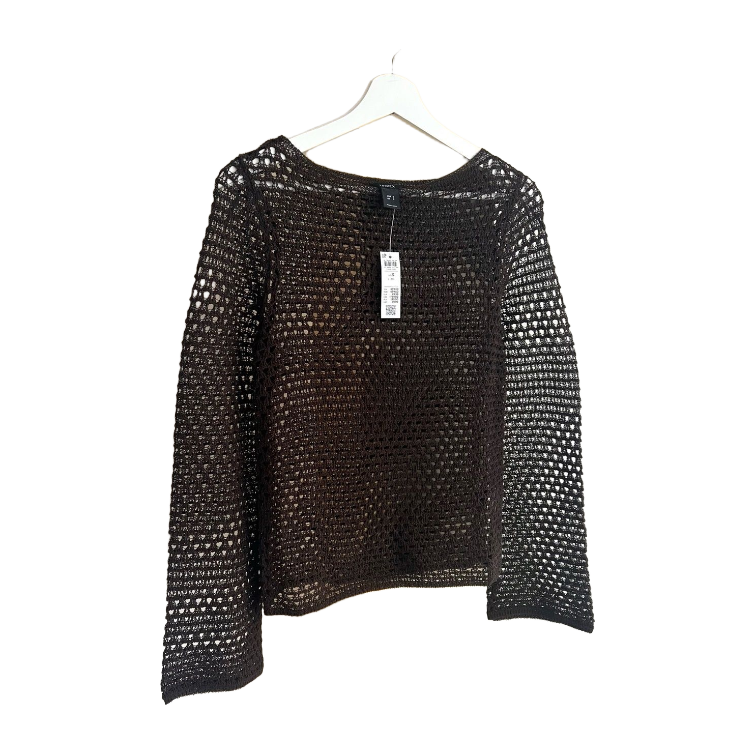 Kaunis, ruskea neulottu paita. Venepääntie ja väljät hihat. Normaali istuvuus. Koko S. Ihan uusi ja virheetön.
