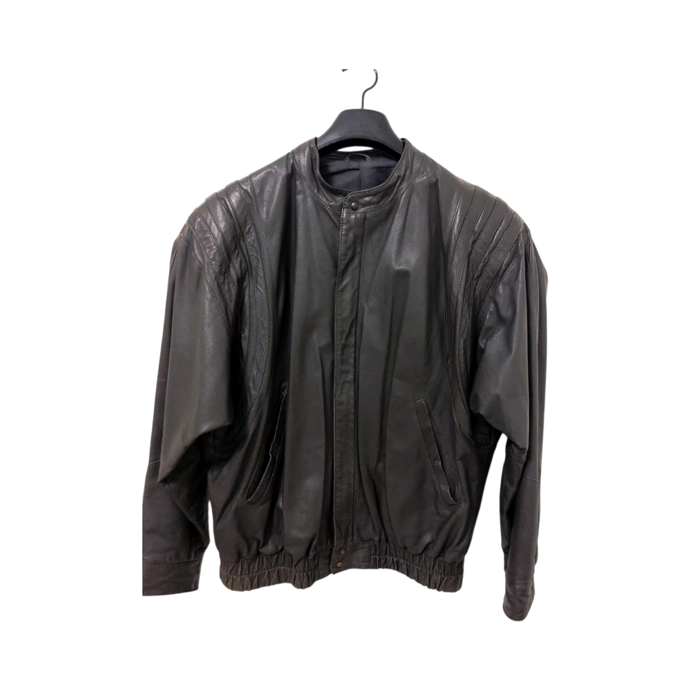 Miesten malli, kotimainen Petruska design tumman harmaa nahkatakki, täysvuori, koko 52, olkapäästä helmaan pituus 70cm, hihan pituus 61cm, väljä malli