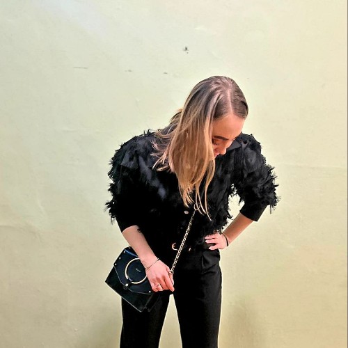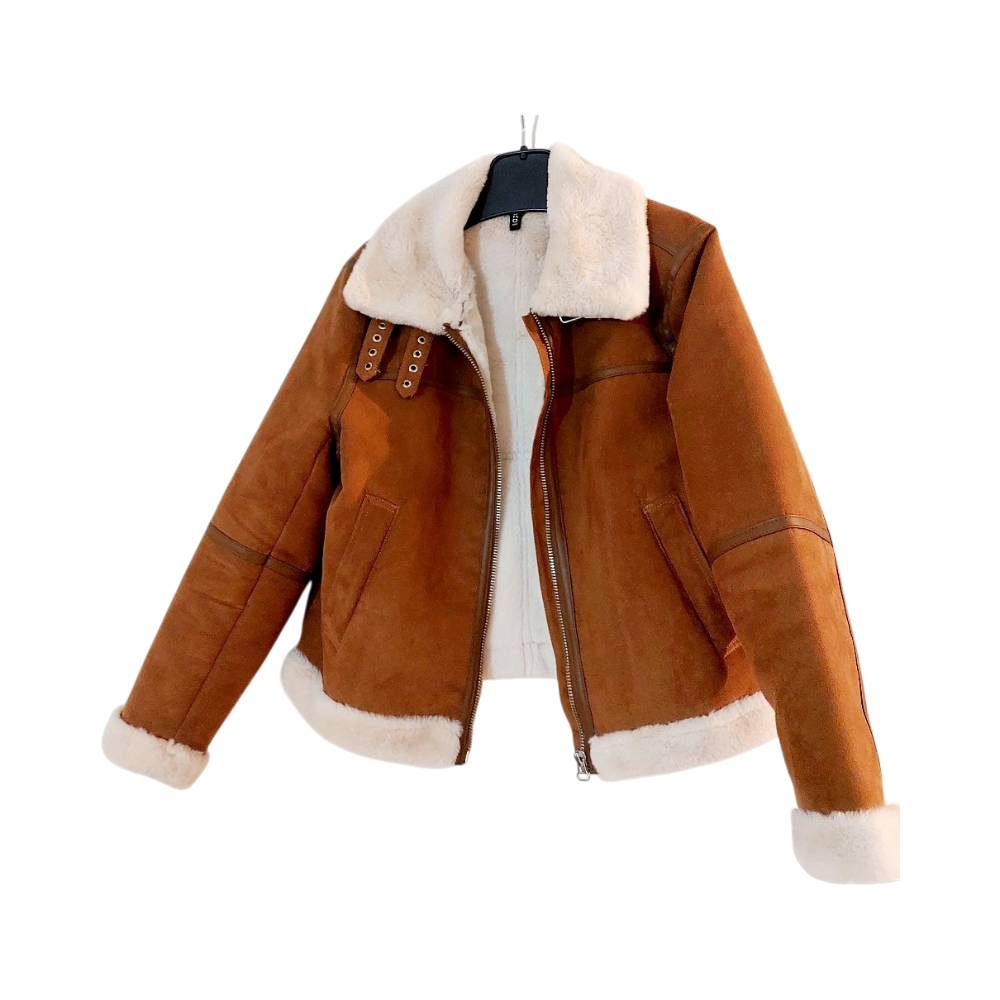 Stylish brown shearling jacket with soft warm lining. In a great contition. Warn few times only.