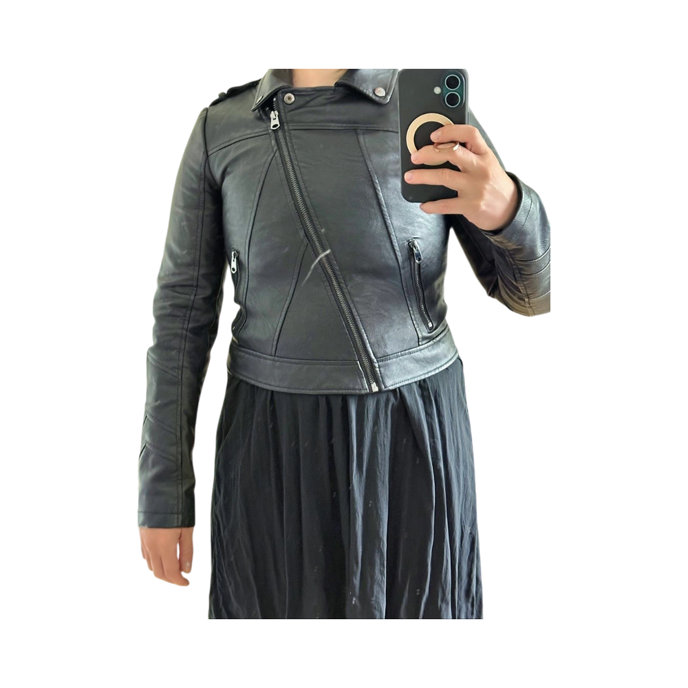 Lyhyt musta biker-takki, vetoketjullinen, kuin uusi
