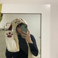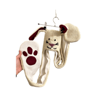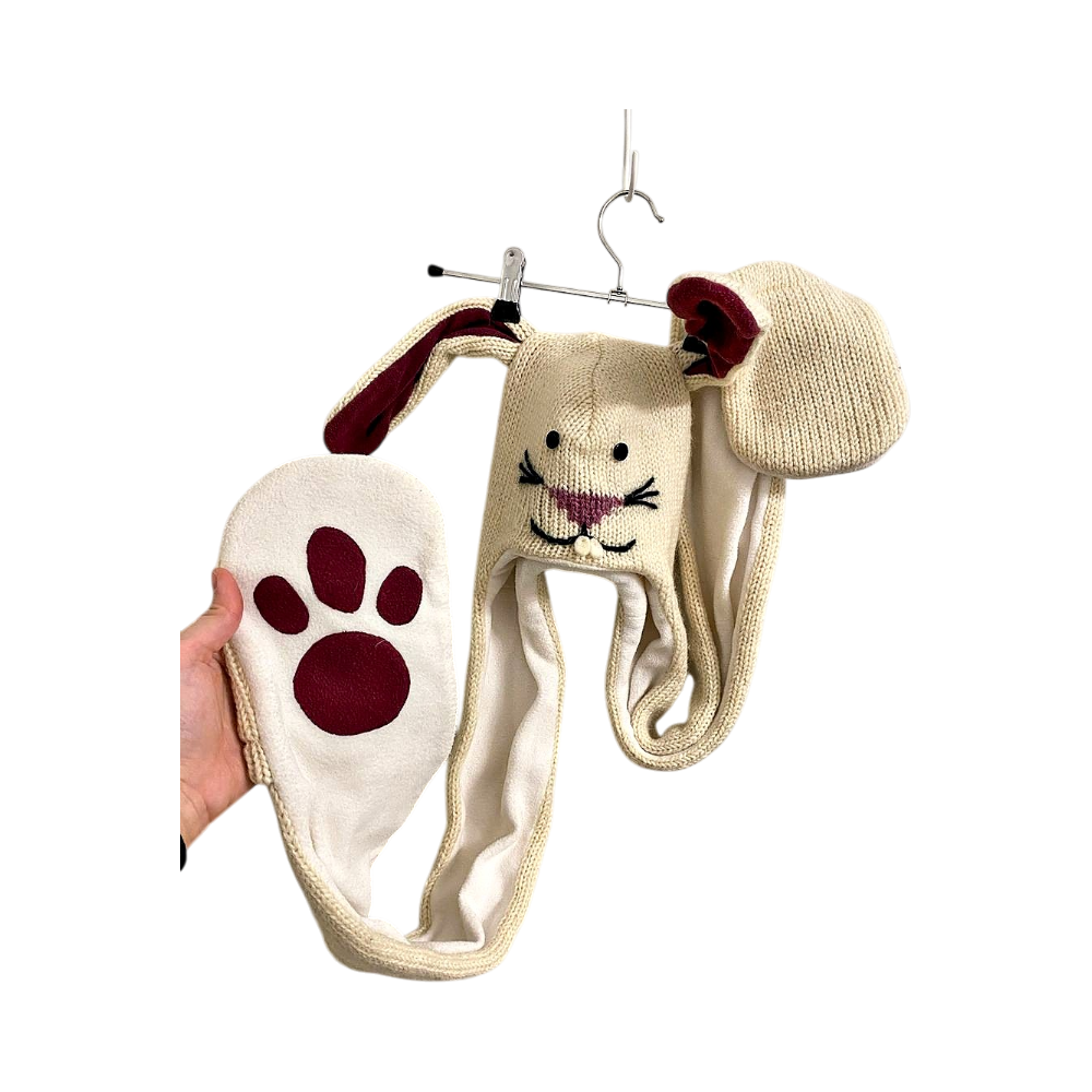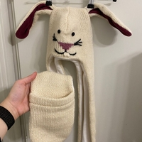 Cute rabbit hat with attached paws for warmth. Söpö pupun villapipo huivilla/lapasilla. 100% paksua mohairvillaa, erittäin lämmin ja söpö. Reilun kokoinen, mielestäni sopii sekä lapsille että aikuisille.