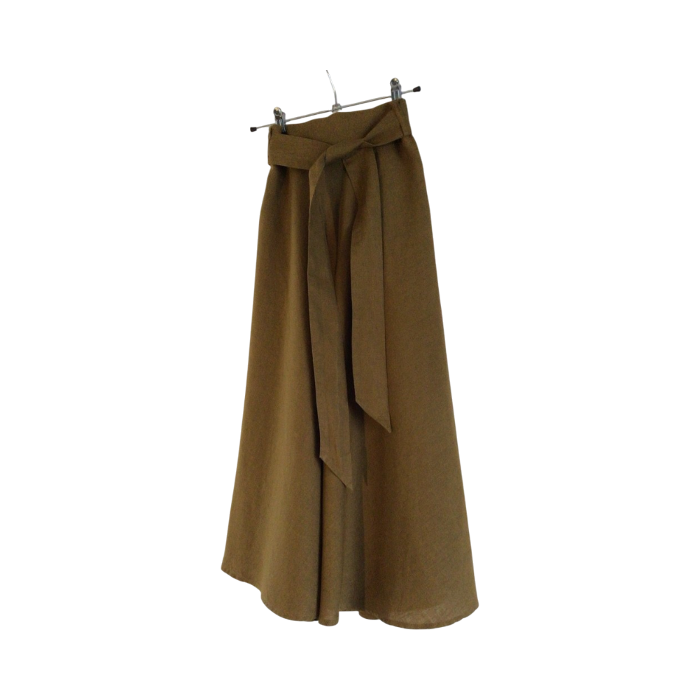 Balmuirin ihana 100% pellavaa hame kokoa xs. Kaunis tumma sinapinsävy, sopii hyvin mustan ja valkoisen kanssa. Takana joustava kuminauha, sivuilla taskut ja upea kellohelma. Vyötärö n. 30cm, venyy hyvin 35-38cm saakka, pituus n. 80cm ja helman leveys n. 120cm. Irroitettava, pitkä vyö samaa kangasta. Hyvälaatuista ja hyvin laskeutuvaa pellavaa. Erittäin hyvässä kunnossa.