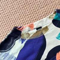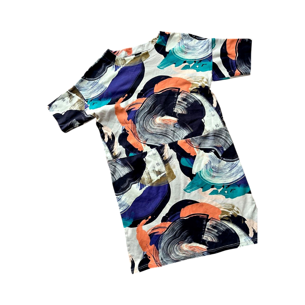 Nanson väljän mallinen rento mekko, pehmeä ja joustava. Koko m, pituus 96cm ja kai kai mitta 58cm. Edessä isot taskut