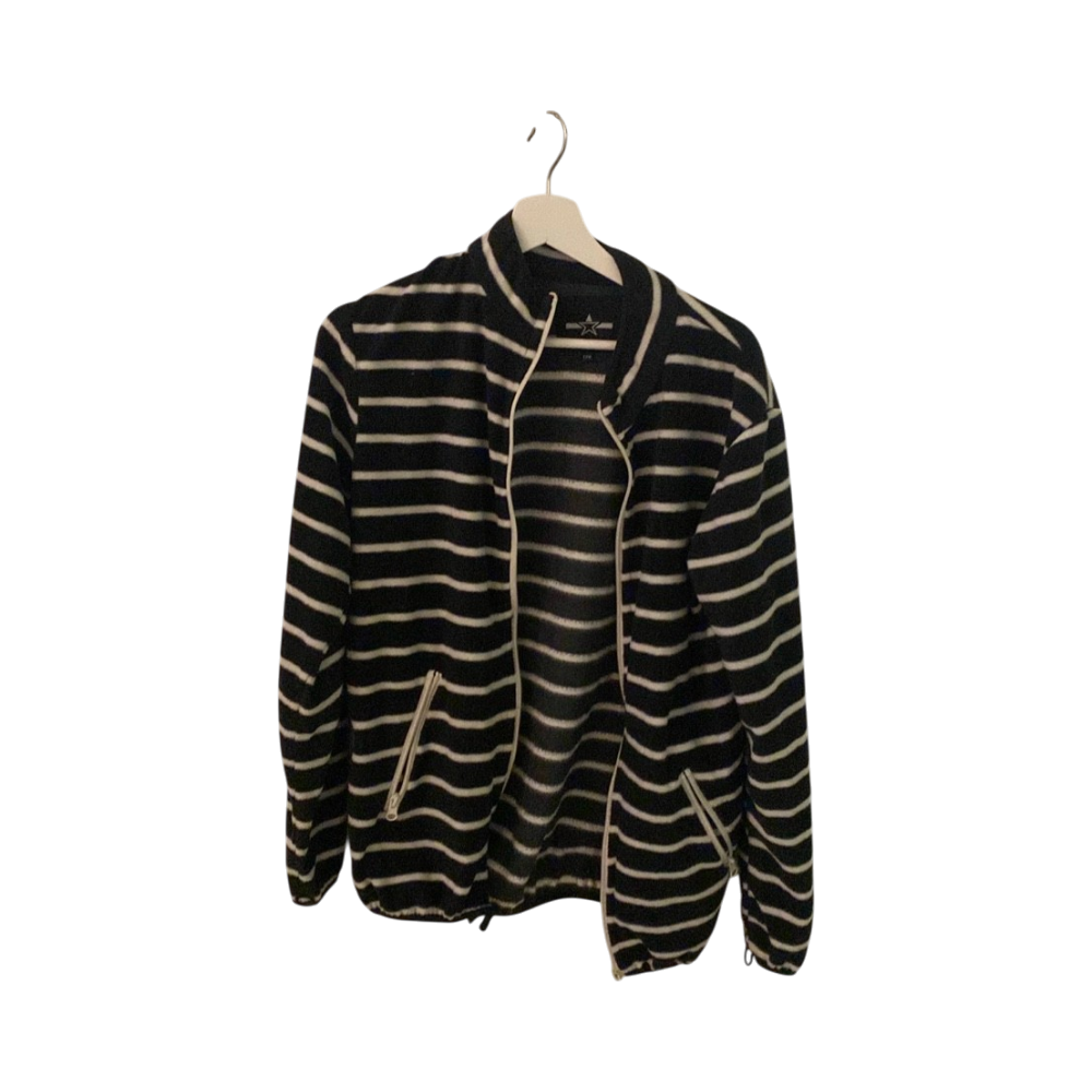 Välikauden bomber-takki, vetoketjutaskut, raitakuvio.