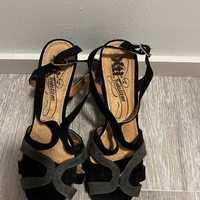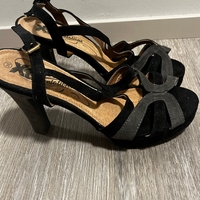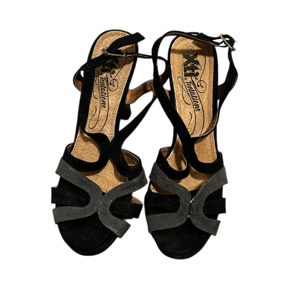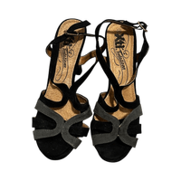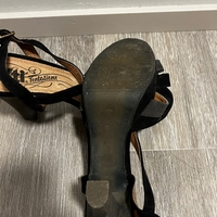 Mustat avokkaat harmailla koristeilla, nilkkahihna, korko. Kerran käytetyt