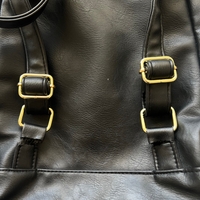 Mustaa keinonahkaa oleva pieni reppu arkeen. Hihnat hieman revenneet.
